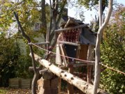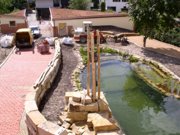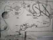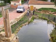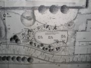 2500m² Gartenbauentwürfe inkl. Gründach auf windschiefer Ebene, Eingangstor Entwurf nach Panflöte, Spielgeräte aus Robinie, Weidentunnel, Wasserspiele, Naturbadeteich, Abgasrohr Pelletanlage im Erdreich, Sandstein Trockenmauer, Sandsteineinleger
