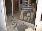Lehmputz, Innendämmung Holzweichfaser, Blähton in Luftzwischenraum Außenwand, Grundofen, Eichenfenster erhöhter Schallschutz, Innenwände aus Korklehmsteinen, Stampflehmestrich, Stampflehmwand, Cotto, Dielen, Parkett, Marmor Mosaik